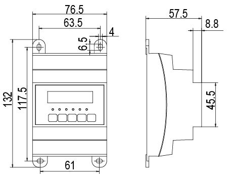 ◆安装尺寸: 35mm导轨安装或螺钉固定 外形尺寸: 77mm×132mm×58mm